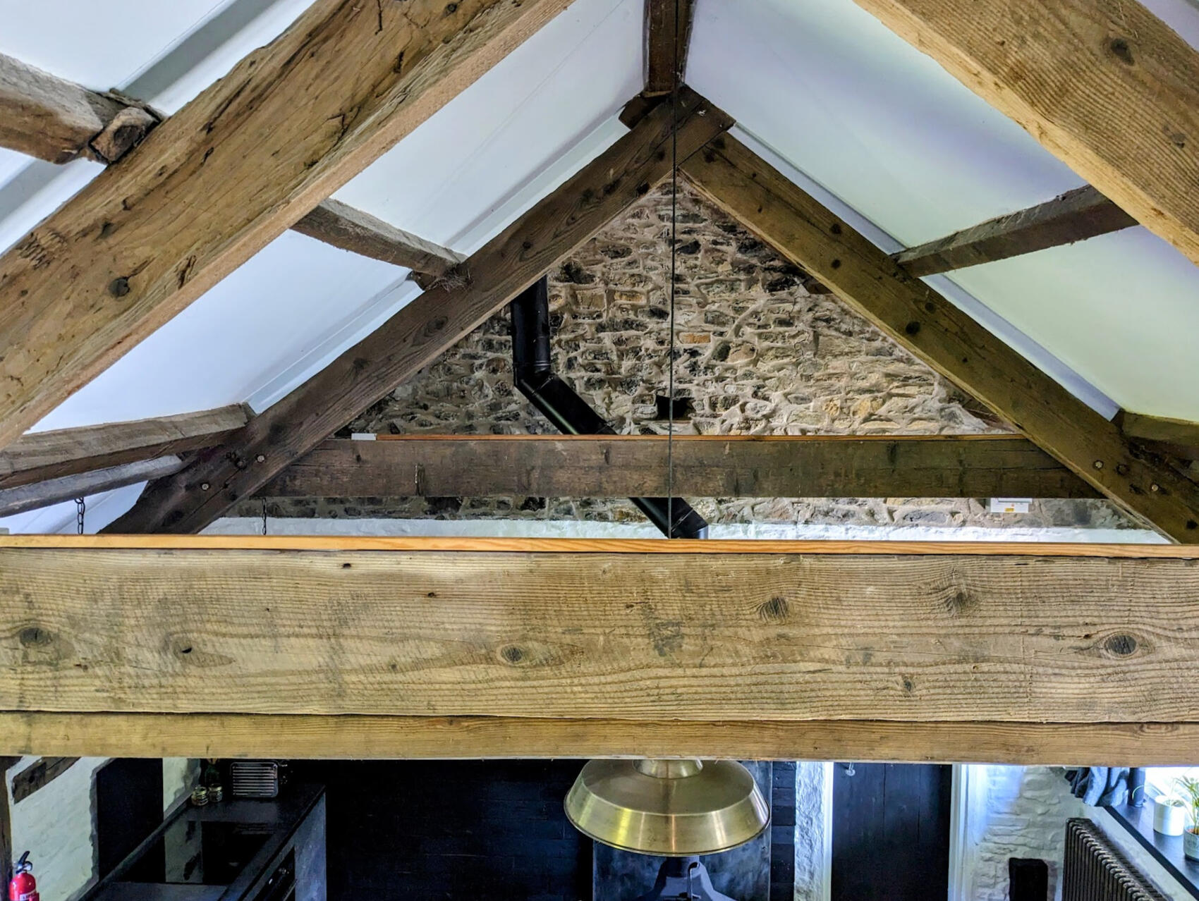 The Reading Room, formerly the forge to the Castle Howell Estate. This structure is a prime example of traditional Welsh solid wall construction, utilizing locally sourced stone, lime, and timber.The interior of the Reading Room has been meticulously renovated to preserve the integrity of the traditional building. It features breathable renders and paints, flooring crafted from recycled timber, and claystone render.The open-plan interior includes a contemporary kitchen and shower room at one end, complemented by feature beams, traditional-style radiators, and reclaimed timber flooring. Stone steps lead to a mezzanine sleeping area, enhancing the space's functionality and charm.The Reading Room Library offers a wide selection of reading material for guests to enjoy. Guests are welcome to leave their holiday reads for future visitors.Please note: We are vegan and happy to have vegan & vegetarian food cooked in the Reading Room Kitchen. Please respect our wish for no meat or fish to be cooked or consumed here.